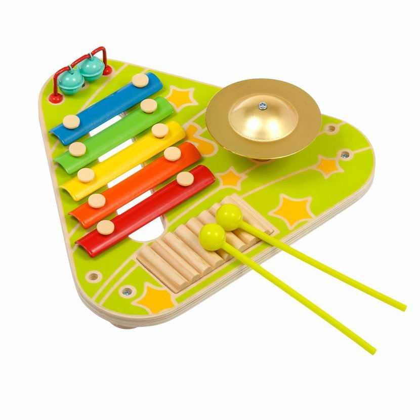 Dřevěný multifunkční hudební panel je skvělý pomocník pro rozvíjení hudebního sluchu, rytmu, vnímání pojmů jako nahlas a potichu. Hra pomáhá rozvíjet i jemnou motoriku, ale je nápomocná také k pochopení mezi akcí a následným dějem - vydaným zvukem. Pomocí této sady může dítě vytvářet různé melodie a rytmy a mít svoji malou vlastní kapelu. Hudební panel obsahuje: xylofon, dřevěné bloky, činely, rolničky a dřevěné paličky.